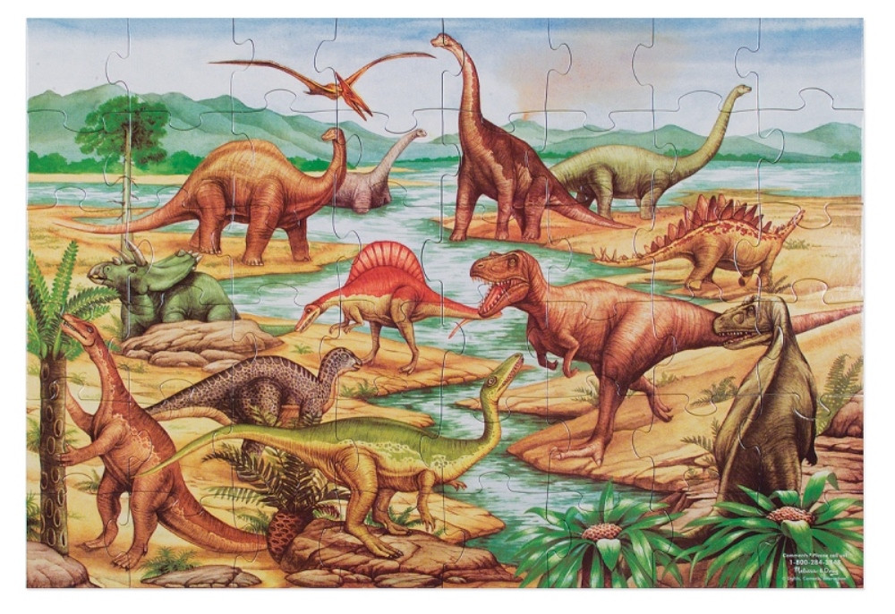 Interest in dinosaurs will never become extinct! Meet some favorites while completing this colorful cardboard puzzle. Two feet by three feet when assembled, it features 48 extra-thick pieces and an easy-clean surface to keep it looking new.